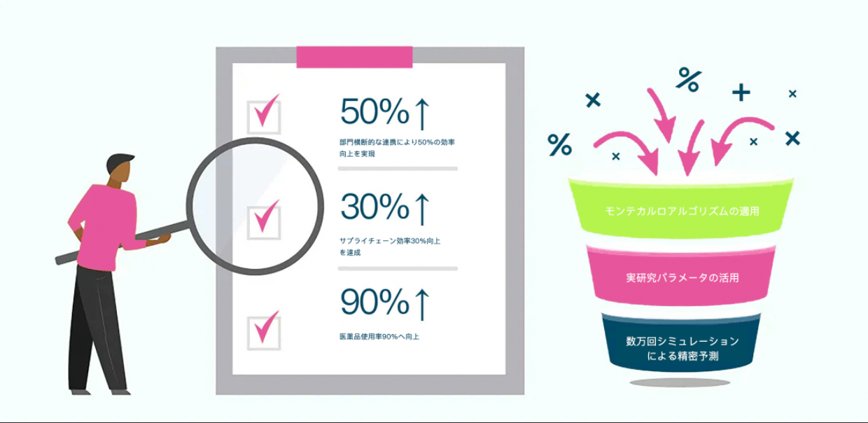 医薬品供給リスクの能動的管理を実現する「Supply AI」は、週次、月次、四半期単位での期間選別が可能なローリング予測機能により、医薬品需要変動を事前に予測。過去データと来院計画に基づく予測で、被験者登録ペースと来院スケジュール変動を精密に把握します。短期間サイクルかつ高精度な動的予測により、薬物使用効率の向上だけでなく、在庫過剰や期限切れリスクの大幅な低減を達成しています。